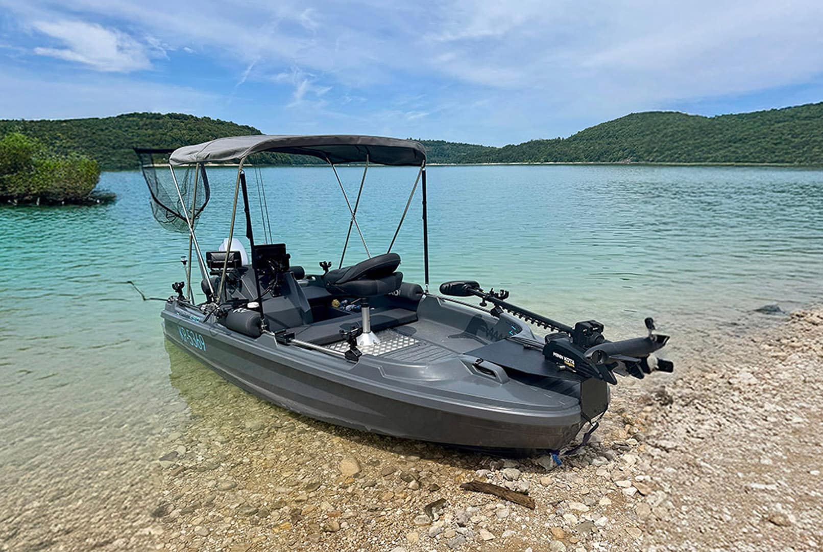 De romp van de Hydra 450 is zo ontworpen dat de boot licht, wendbaar en perfect in balans ligt op het water. De brede bodem en de slimme gewichtsverdeling zorgen voor stabiliteit bij staan, lopen en instappen.