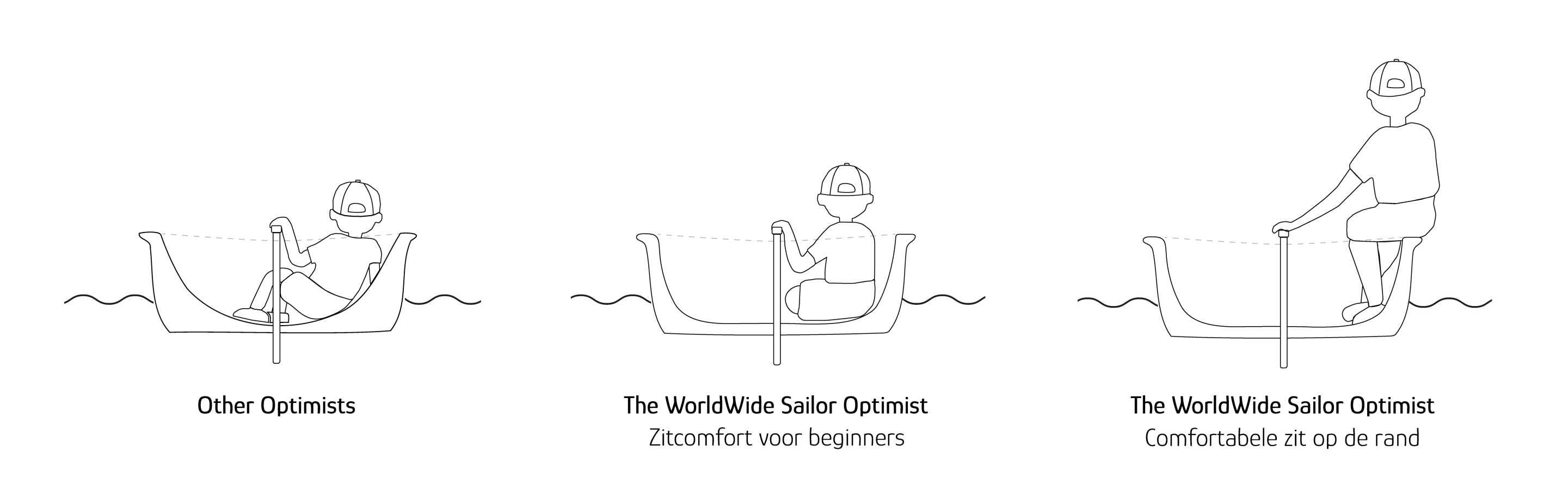 De WorldWideSailor heeft een slimme kuipvorm die jonge zeilers direct een stabiele en vertrouwde zit geeft.